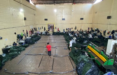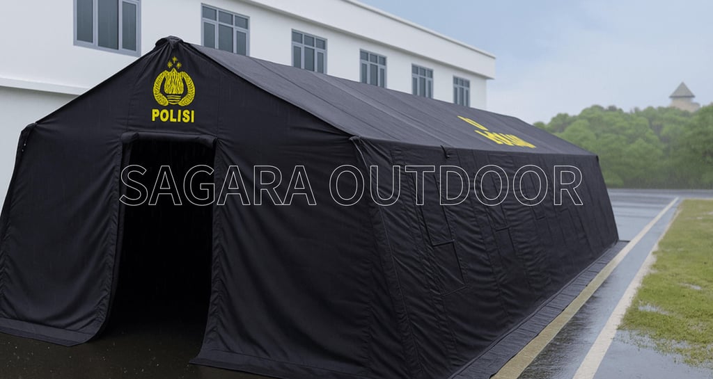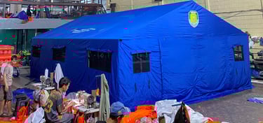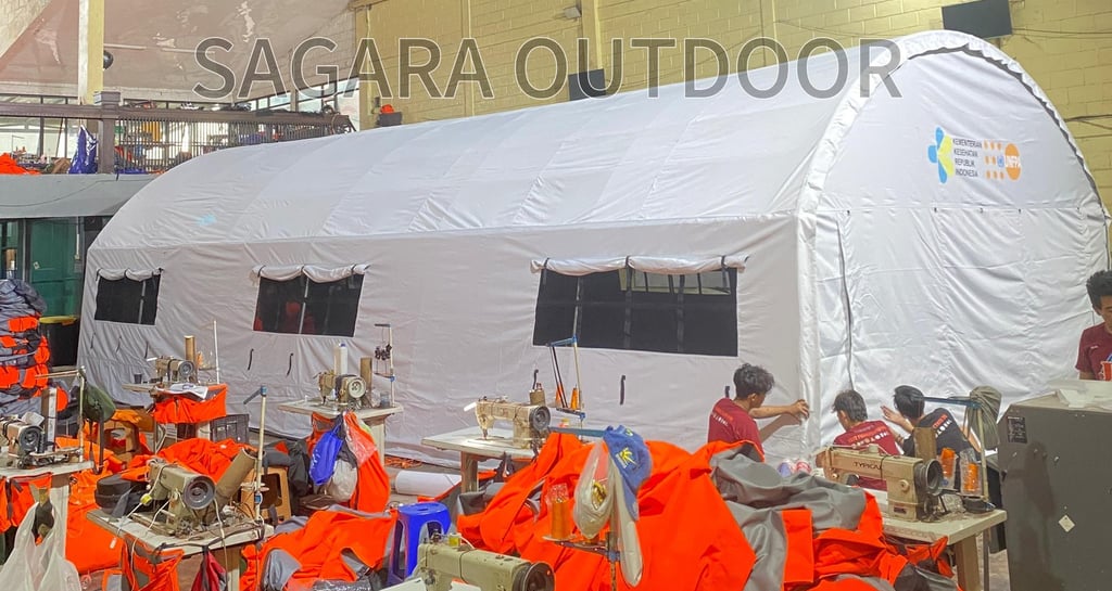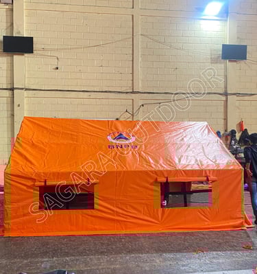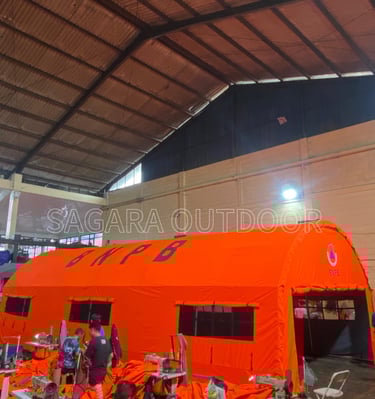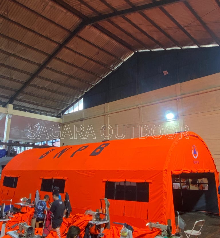 tenda multifungsi, dirancang untuk keperluan darurat seperti tempat tinggal pengungsi, posko bantuan, atau ruang kelas.