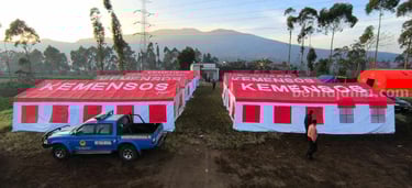 Tenda darurat 4x4meter yg biasadi gunakan oleh BNPB atau KEMENSOS untuk pengungsi di lokasi bencana.