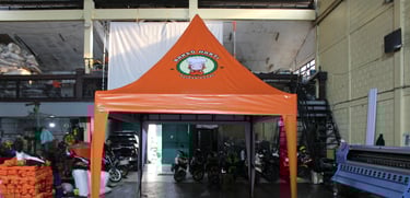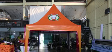tenda berbentuk atap kerucut yang dirancang untuk keperluan promosi, pameran, bazaar.