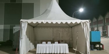 Tenda untuk acara seperti pameran, atau festival, memberikan perlindungan dari cuaca dan meningkatkan estetika.