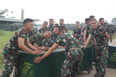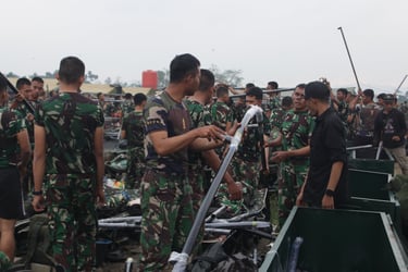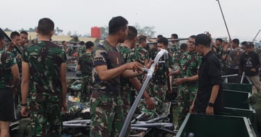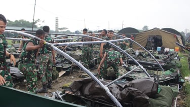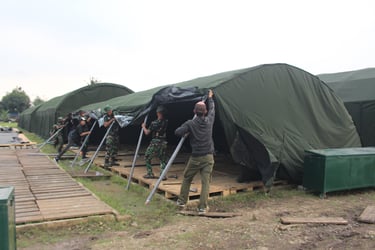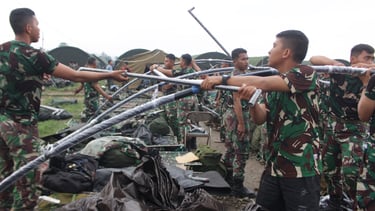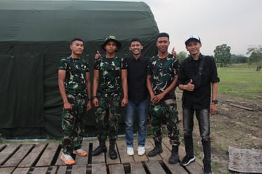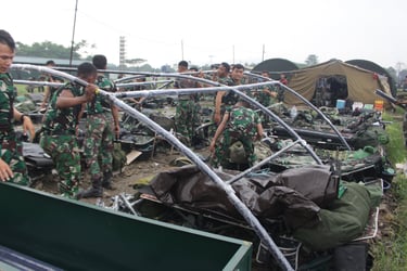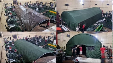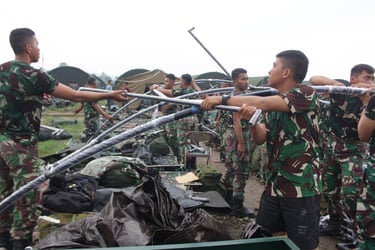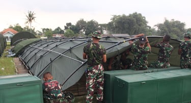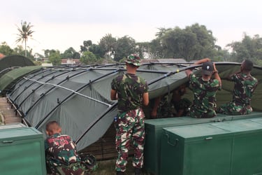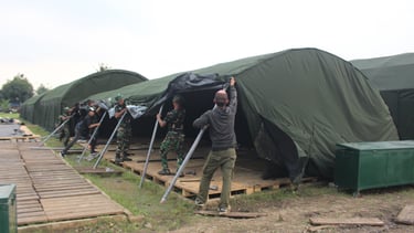 PEMASANGAN TENDA BERSAMA PERSONIL TNI