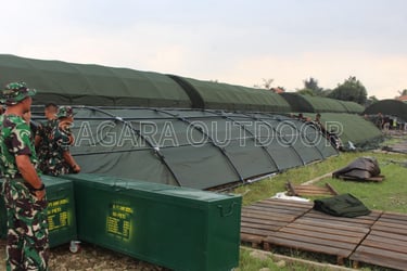Jika Anda sedang mencari pabrik tenda oval lorong TNI terpercaya, maka Sagara Outdoor adalah jawabannya. Berlokasi di Kota Cimahi, JAWA BARAT, Sagara Outdoor telah menjadi salah satu produsen tenda berpengalaman yang dikenal karena kualitas produk, ketepatan waktu, dan pelayanan profesionalnya, khusus nya tenda-tenda untuk TNI seperti tenda oval lorong, tenda serbaguna, tenda pleton Dll.